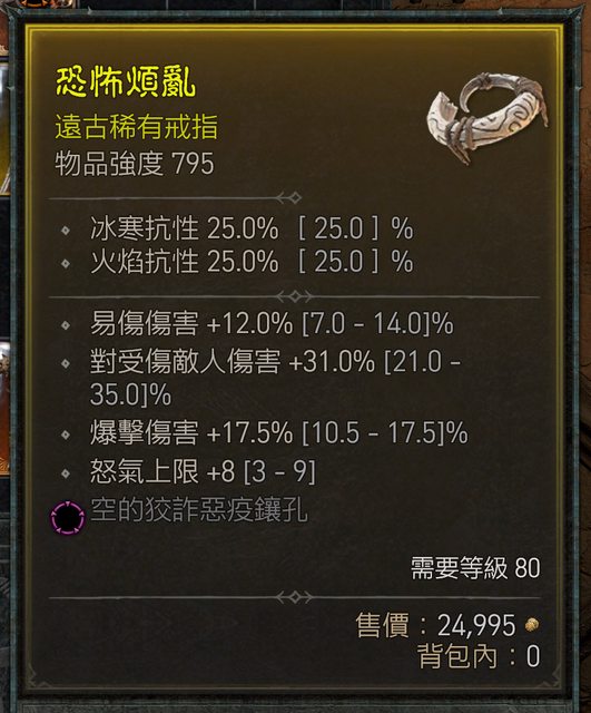 標題[競標] D4 野蠻人戒指 怒氣 易傷 暴傷