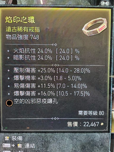 標題[競標] 兇邪戒指(易傷/爆傷/爆率/壓制)