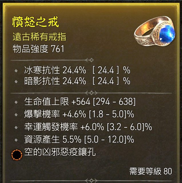 標題[競標] D4 賽季 戒指 橘洞 爆擊/幸運/生命/資뜣