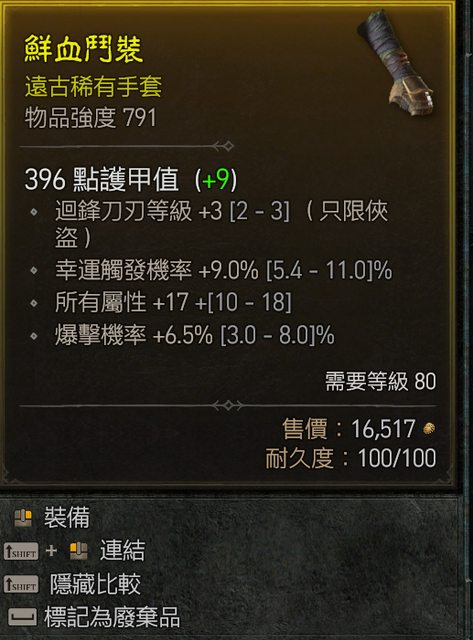 標題[競標] S1 手套 迴鋒/幸運/暴率