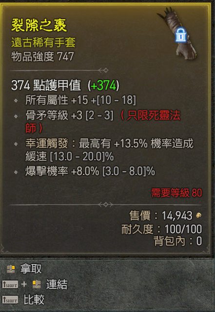標題[競標] D4 S1 死靈 骨矛3頂爆全屬手套