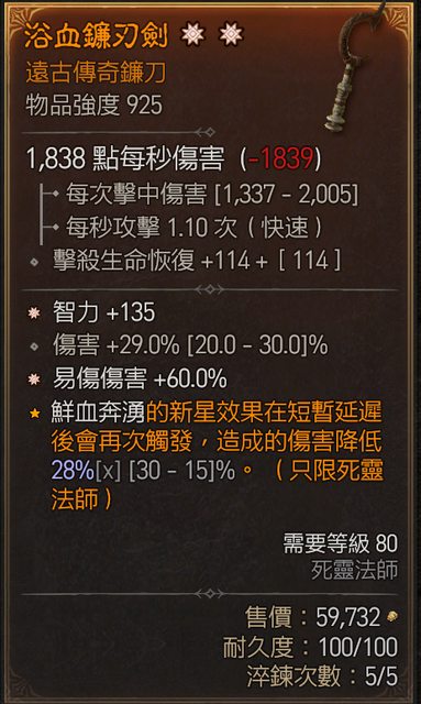 2. 二太古單手鐮刀 智力 易傷 + 傷害 : 1E 暗黑幣