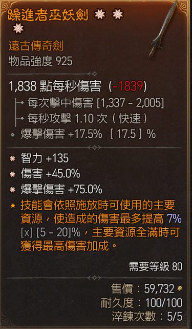 4. 三太古單手劍 智力 傷害 爆傷 : 10E 暗黑幣