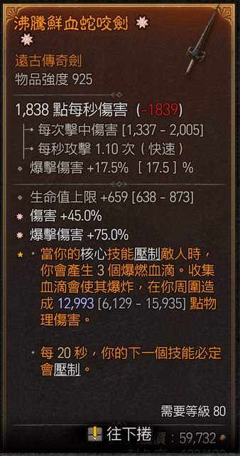 1. 二太古單手劍 傷害 爆傷 + 生命 : 1E 暗黑幣