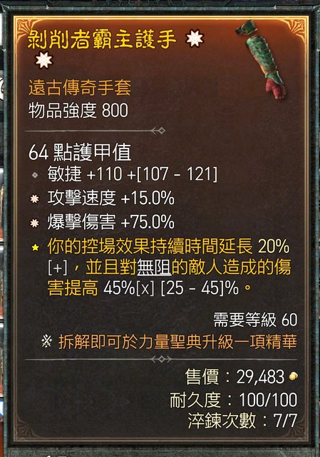 出售 雙太古 攻速/爆傷 特效滿 手套 10000P