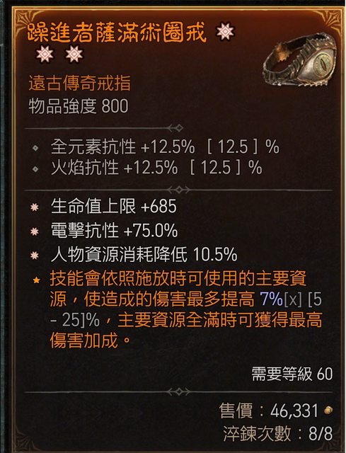 標題[競標] D4 S6 三太古戒指 生命 減耗