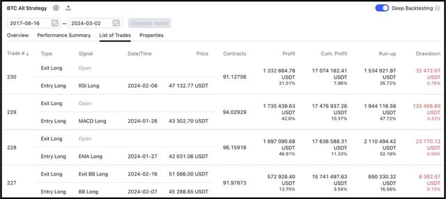 如圖,我的 6 支 BTC 量化策略(4 支做多、2 支做空)在 2 月這個波段的盈利約為 34