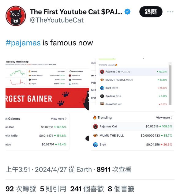 YT創辦人前陣子成立的迷因幣PAJAMA