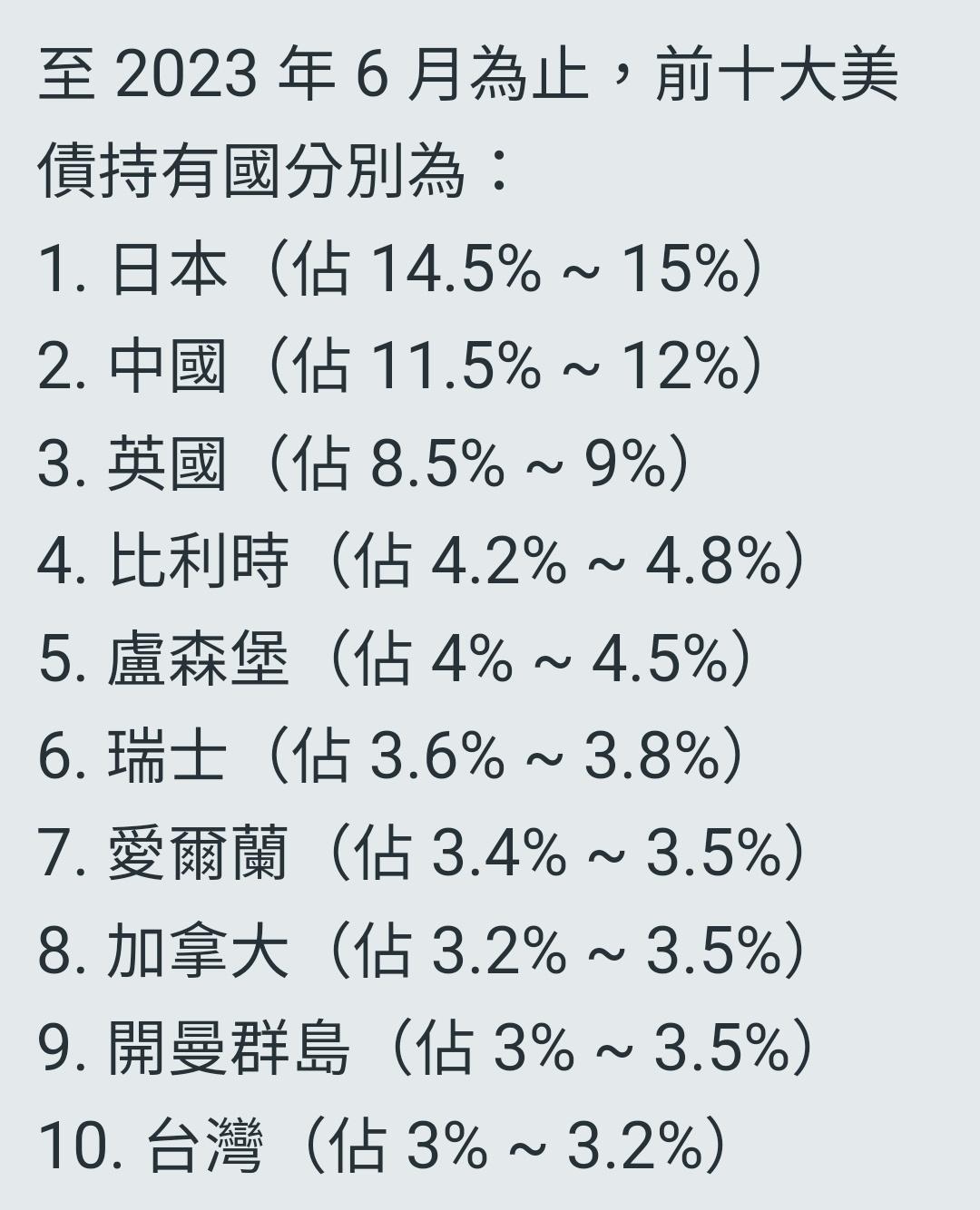 → liton: ROC持有美債總量的3%?你不覺得怪怪的? 05/15 10:24