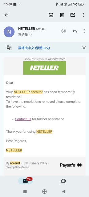 → abc7815468: 超級囧的,我剛開好NETELLER帳戶後,從Skrill轉帳過06/03 15:39