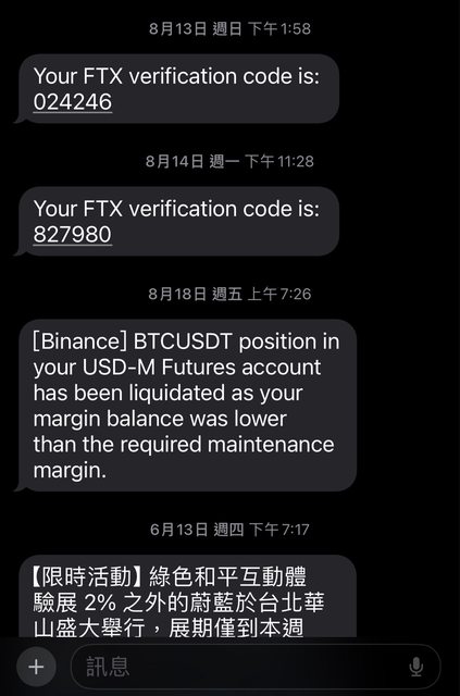 2023.8.17的夜晚想說睡前來掛個20倍BTC-8%的樂透單,一覺醒來收到幣安的簡訊問候。