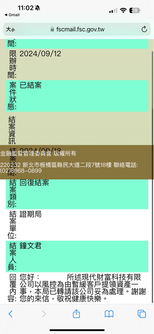 推 richard520: 直接寫信去金管會,神速處理的話,這家公司真的有鬼 09/20 11:28