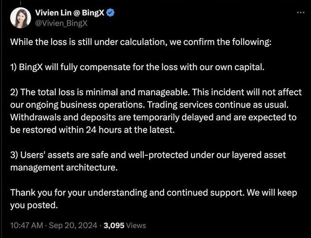 推 ss108288: BingX 說被盜的他們cover 不影響用戶權益,幾千萬人家09/27 18:01