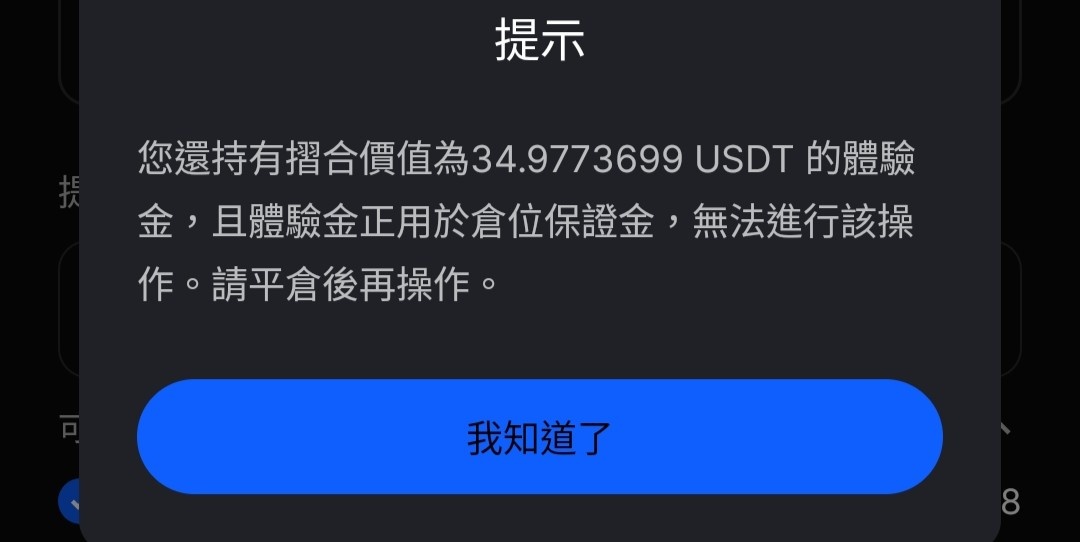 → kevin11951: 投了體驗金給我結果自動被當成當前倉位的保證金,迫 11/23 21:49