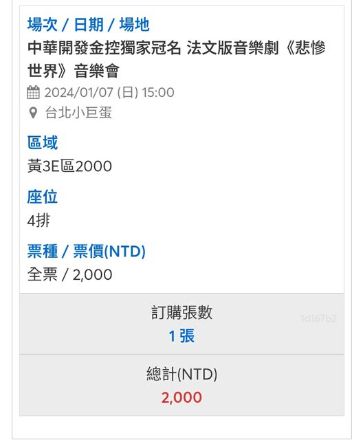 標題1/7 悲慘世界 2000元
