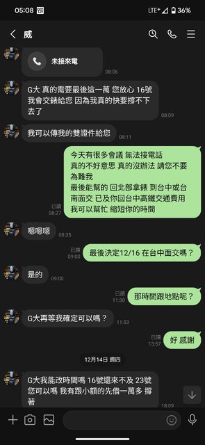 推 wisebani: 真正缺錢的人會要你馬上配合面交12/26 07:09