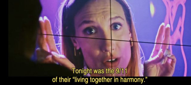 簡短的黑白畫面回憶戲份告訴我們,她倆過去都讀政治學院橫跨社經政媒等多種領域,年輕時代還曾一起當過政治幕僚做得有聲有色... 只是為什麼有天突然分道揚鑣呢?劇情慢慢告訴我們這恐有種天才自虐的憂國憂民:在 2010s左右 Sam工作做久陷入了長期焦慮,看心理醫生都喃喃自語「有齣美劇總說 Winter is Coming」XD 以她專業見解非空穴來風,這個世界照現狀發展她已料到必極化走向 (!)迎接我們的縱非「世界末日」也是「法國內戰」呀!雖然心理醫生總是笑笑「人們預料世界末日都沒有成真」,但她細數史上戰爭屠殺 (!)其實小規模的世界末日早發生多次。