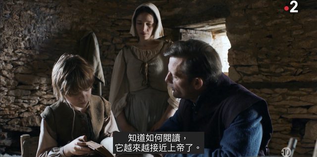 本劇劇情演技對我來說都是其次,最重要的還是取景攝影音畫合一打造「法國田園詩」,光看農人耕田農婦洗衣與貴族策馬,都令人忍不住想買張機票飛去法國徜徉詩畫間!其中最膾炙人口蕩氣回腸的「配樂」由《燃燒女子的畫像》Arthur Simonini 一手譜寫,各種法國風情的古典浪漫印象樂派都給他搭配場景信手拈來,只是寫到文藝復興宗教聖歌時 (!)已無可避免「山雨欲來」:儘管主角 Siorac 信仰新教都低調隱晦、平日走動小鎮對宗教言論摩擦衝突都不吭一聲,但這時代「思想檢查」風聲鶴唳仍對他步步進逼、他既須避重就輕又需小心不違教義也真是種存活藝術呀。
