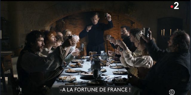 E01 中段一家眾人不分階級多種信仰一起來晚餐,家主 Siorac 敬酒祝賀就是不論任何信仰儀式與文化差異、我們都同屬法國「願國運昌隆」A la fortune de France!只是他們一個小小城堡的迷你烏托邦能散播包容價值普及全法?我們都知再過五年 1562 就將展開法國史上最痛的「胡格諾戰爭」Guerres de Religion 死傷數百萬、再過15年則是法國史上最驚嚇的「聖巴托羅謬大屠殺」Massacre de la Saint-Barthélemy!只怕主角還活不到那時就已先被「宗教裁判」l'Enquête磨刀霍霍!難道一個多元共生富足繁榮的城堡烏托邦,E01 才演一集就將慘遭滅門妻離子散嗎?