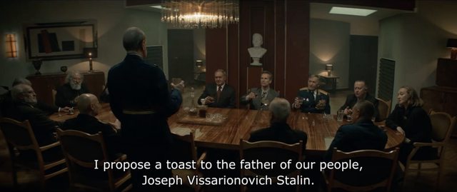 本劇此時 1996 前蘇聯高官才勉強適應私有化不久、經濟一路節節敗退人人都懷念過去,只是當大家軍裝整齊舉杯遙祭「人民之父史達林」時、認真要讓國家重回共產體制嗎?那也並沒有,不管共產還是資本只要他們能繁榮就好,資本主義強取豪奪也不違背「戰鬥民族」俄羅斯精神,這非意識型態而是地緣政治 (!)是西方在巧取豪奪瓜分俄羅斯!那俄羅斯當然不是重啟鐵幕搞閉關自守、而是長期備戰表面示弱私底下固本培元:西方要「民主選舉」我們就拱他們喜歡的葉爾欽,但民主只是幌子 (!)實則在葉爾欽手下培養強人政治 (!!) 未來將出何等人才替俄羅斯揚眉吐氣呢?