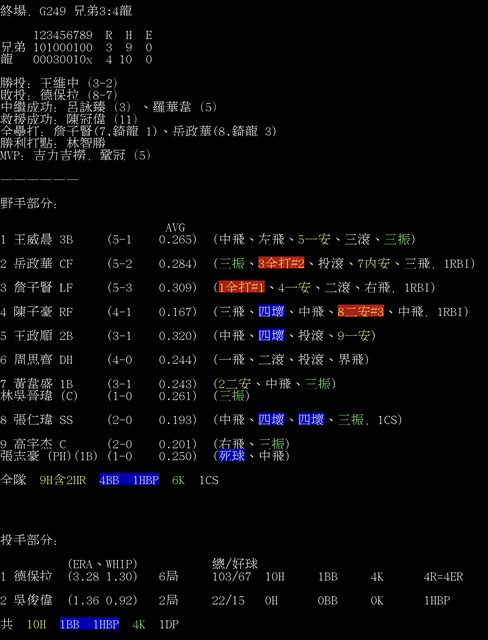 標題[情報] G249 兄弟3:4龍 全場數據box