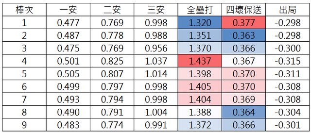 → yanilh: 後段打者較不易連貫、大局,有盜壘能有效增加得分機率 09/25 10:17