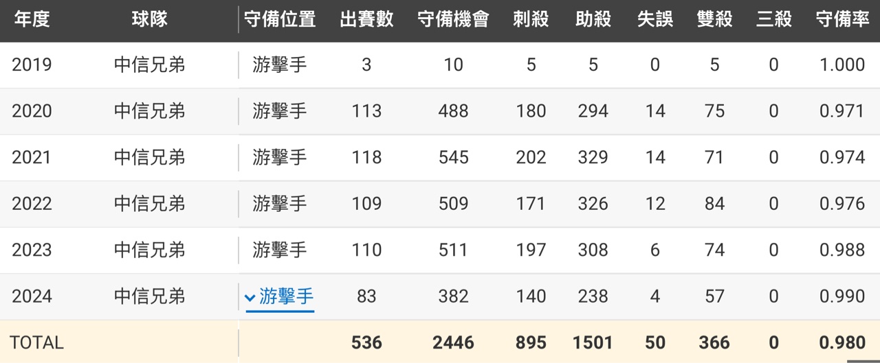 推 cocono2: 7上場17守備4E,哪來的一場失誤? 09/19 23:47