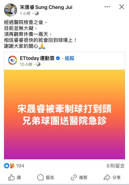 推 hklentop1: 凱程狀況感覺比較糟,宋88昨天下場前還能敲安打 09/20 11:42