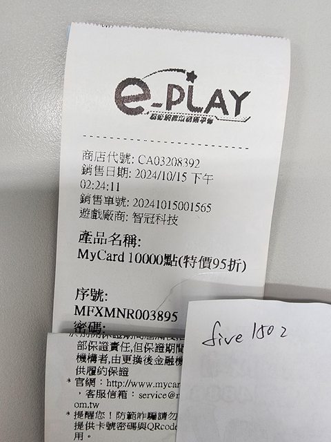 ★【物品名稱】:Mycard 10000點