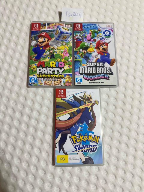 ★【地區語系】:瑪利歐驚奇加油派對都是台灣中文版,寶可夢劍是歐版(支援中文)