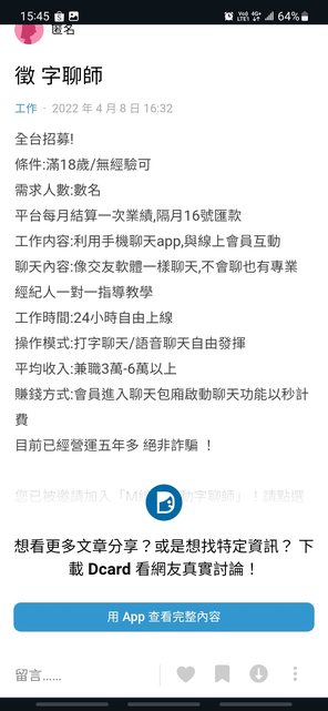工作內容是?線上聊天??