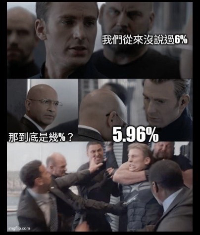 推 Belanice: 以後誰再喊6%試試,是5.96!懂? 42.79.100.224 11/22 16:26