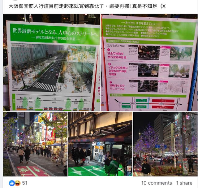 來自反攻大路 大阪御堂筋人行道目前走起來就寬到靠北了,還要再擴! 真是不知足(X https://i.imgur.com/duIJAee.png