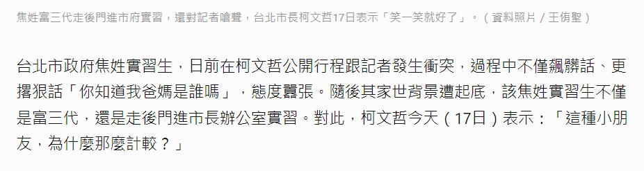→ IBIZA: 實習生嗆你知道我爸媽是誰嗎 柯P還叫大家 60.248.31.167 11/24 11:09