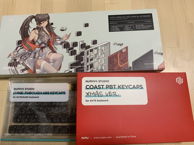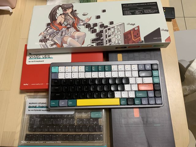 ◎硬體型號: Nuphy Air75 三模茶軸(原版pbt鍵帽)+Air75聖誕版pbt鍵帽+Air75透光abs鍵帽