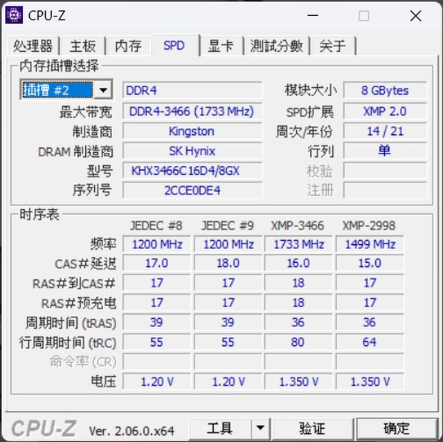 美光的看CPU-Z應該是C17、金士頓3466/C16 3000/C15