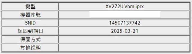 ◎硬體型號: Acer XV272U V 螢幕