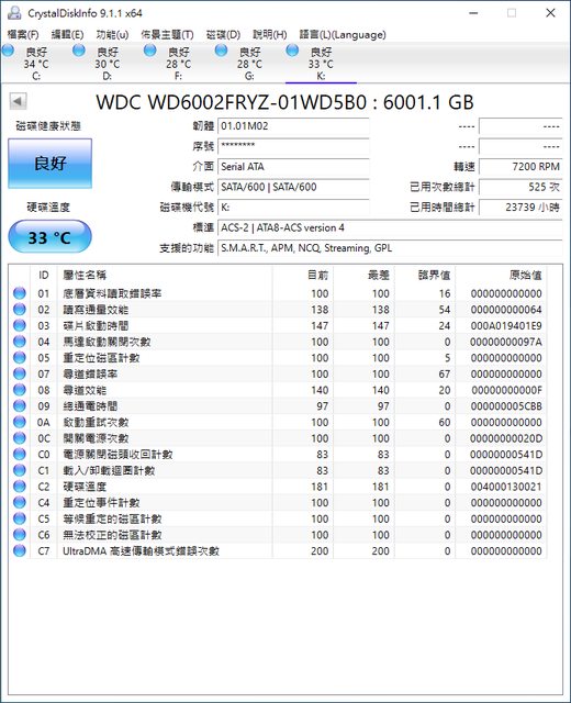 4. 硬碟正常慢掃全綠,SATA接頭塑膠件斷裂,已用新轉接板
