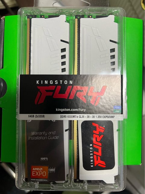 1.金士頓 64GB(雙通32GB*2) DDR5-6000/CL36 FURY Beast 白 (獸獵者)【具雙參數】