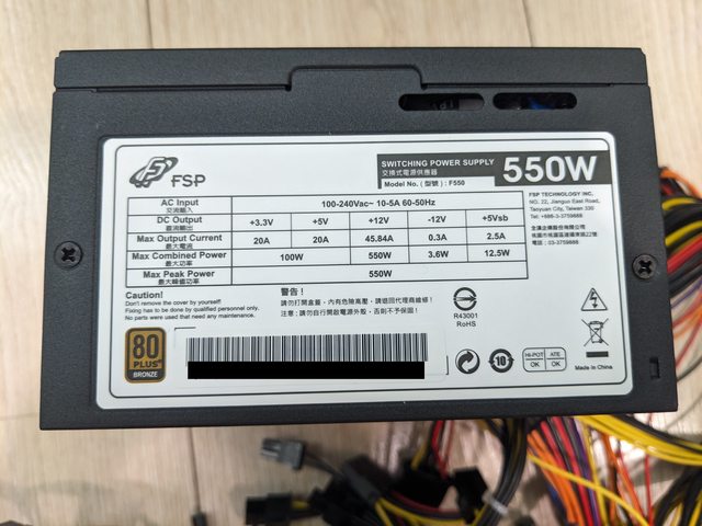 6.FSP 全漢 F550 550W 80 Plus 銅牌