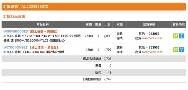 2. ADATA 威剛 XPG SX8200 PRO 2TB M.2 PCIe
