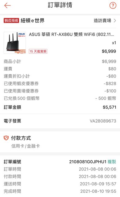 購買日期2021/8/10,三年保固至2024/8/10