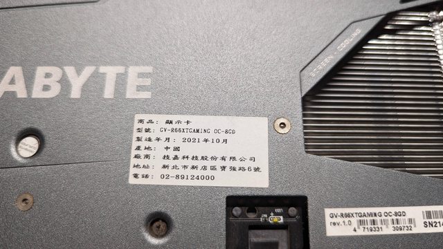◎硬體型號:1 Gigabyte RX6600XT Gaming OC 8G