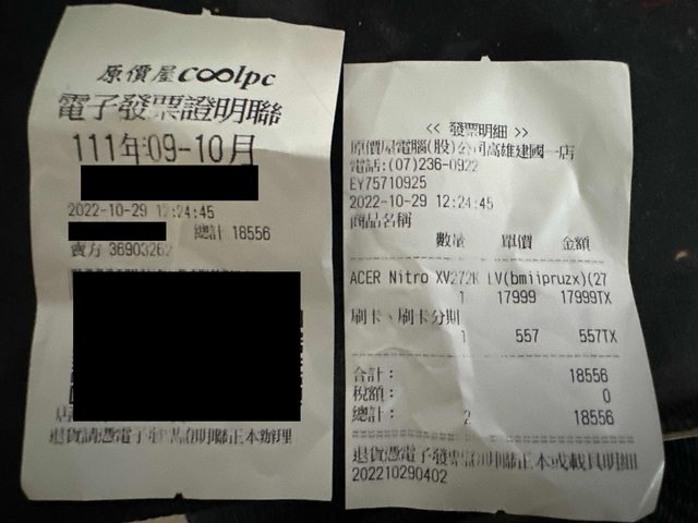 標題[賣/全國/皆可] acer XV272K LV 4K 160Hz 螢幕