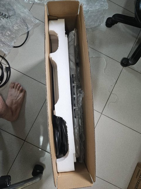 裝箱(原本有兩邊保麗龍,有一邊被同事拿去裁,但還是會塞滿氣泡紙)