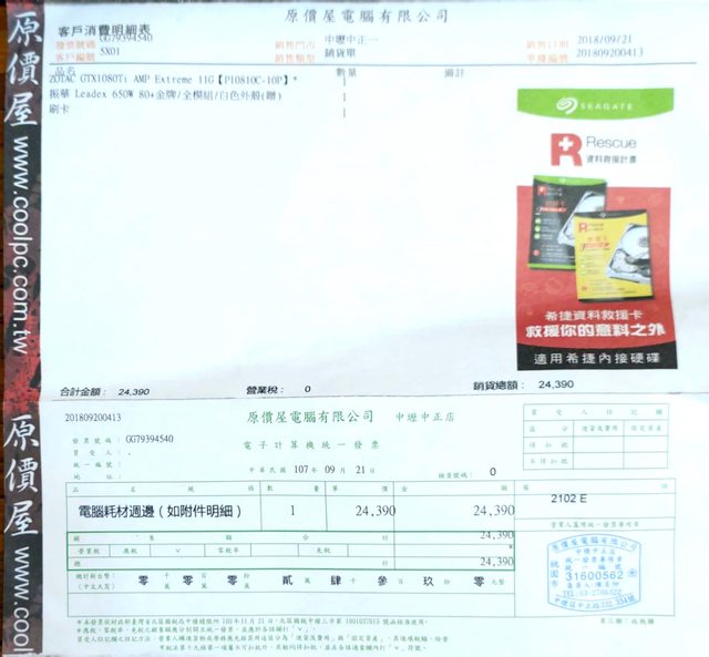 1.Zotac 1080Ti AMP Extreme ZT-P10810C-10P 完整盒裝 購買證明