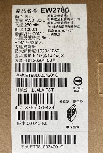 ◎硬體型號:EW2780-L 27吋