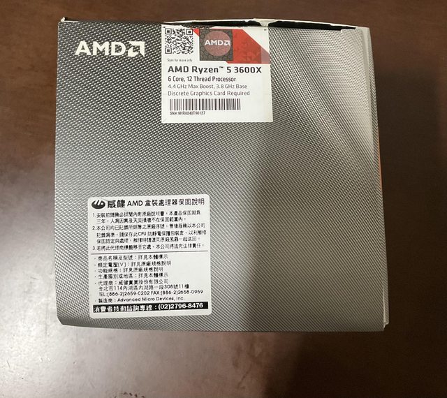 硬體型號:amd ryzen5 3600x 預售價格: 2200 品樣狀況: 過保 升級故售出 盒跟原廠扇都在 原廠扇未使用 作證資料: