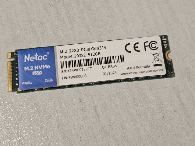 2.Netac G938E 512GB PCI-E 3.0X4