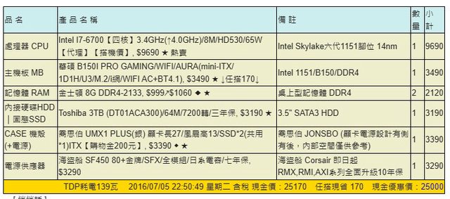 標題[賣/新北/面交] Intel I7-6700 itx整套主機